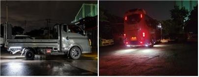 뒷바퀴 조명등은 야간 운행 시 화물·특수·승합자동차의 차체 후단부 시야 확보가 어려워 운행